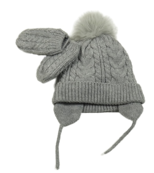Nové - 2set - Šedá pletená čepice s bambulí + rukavice Primark