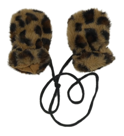Hnědo-tmavohnědo-černé vzorované kožešinové rukavice se šňůrkou KIABI