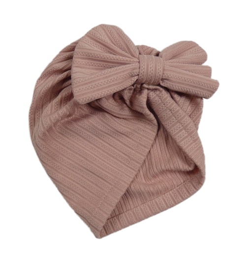 Starorůžová žebrovaná/vzorovaná turbanová čepice s mašlí