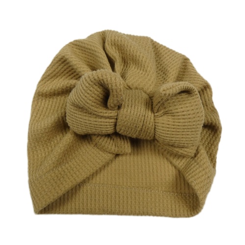 Hnědobéžová vzorovaná turbanová čepice s mašlí