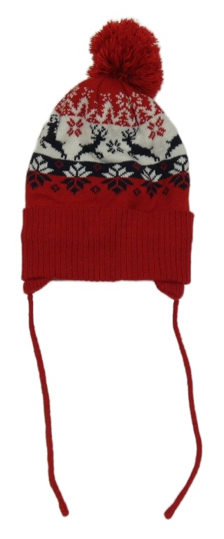 Červená vzorovaná pletená čepice se vzorem a bambulí Pep&Co