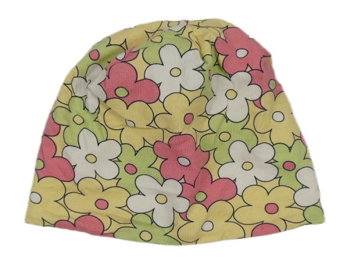 Žluto-barevná květovaná oboustranná čepice