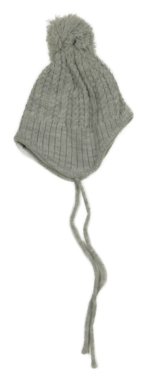Šedo-bílá melírovaná vzorovaná zavazovací čepice s bambulí Ergee