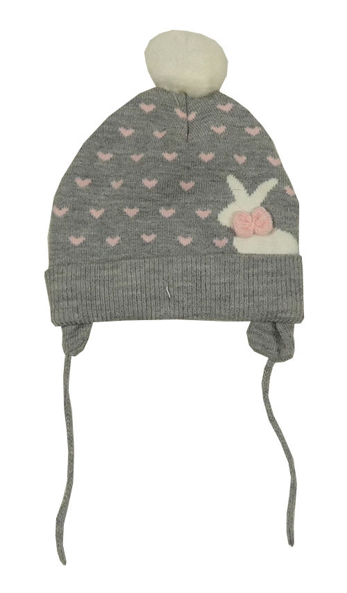 Šedá melírovaná čepice se srdíčky a králíkem C&A