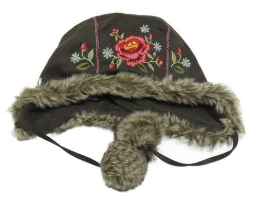 Hnědá semišová zateplená čepice s výšivkou květů H&M