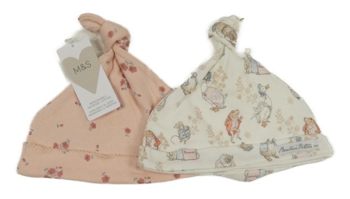 2x bavlněná čepice růžová květinová+ bílá s králíčky