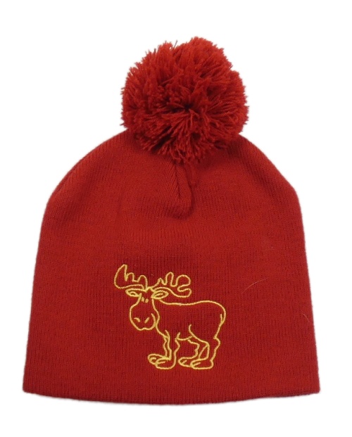 Červená pletená čepice se sobem a bambulí