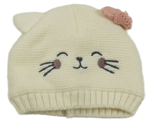 Smetanová čepice s čumákem a oušky a mašlí