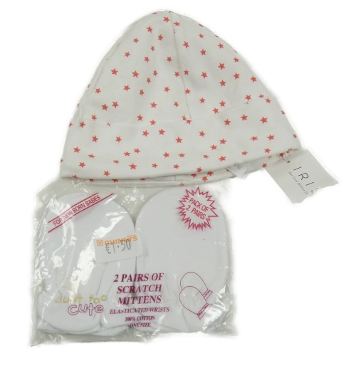 Nové - 3Set - 1x - Bílá čepice s hvězdičkami + 2x - bílé rukavice Just too cute