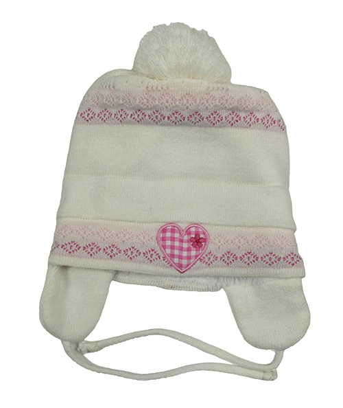 Bílá čepice se srdcem a bambulí
