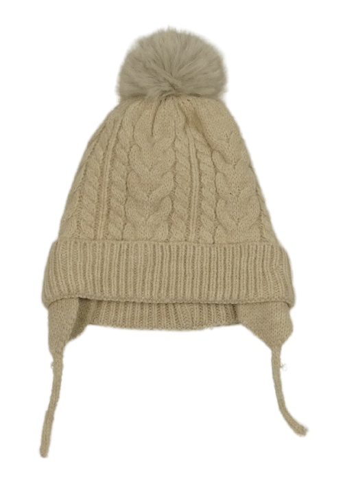 Světlebéžová vzorovaná pletená čepice s bambulí Primark
