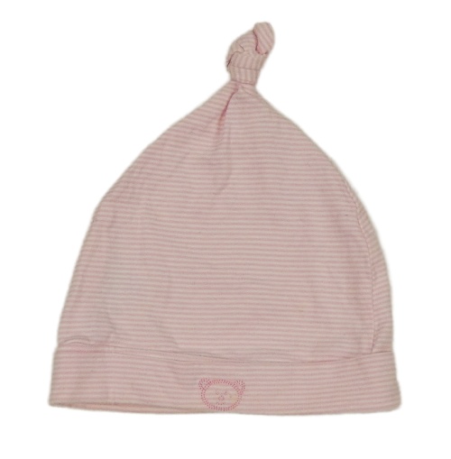Růžovo-bílá pruhovaná čepice s medvídkem Smile