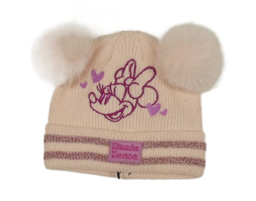 Světlebroskvová žebrovaná čepice s Minnie a pruhy a bambulemi PRIMARK