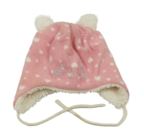 Světlerůžová fleecová zateplená ušanka s kočkou
