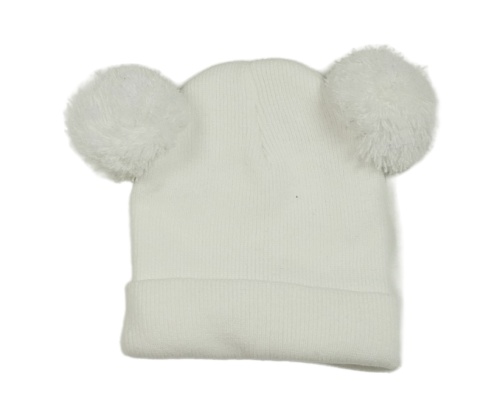 Bílá pletená čepice s bambulemi
