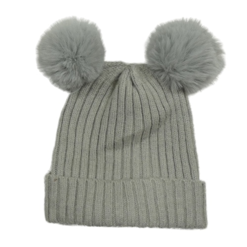 Šedá pletená čepice s bambulemi