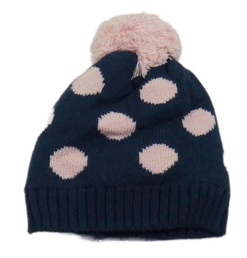Tmavomodro-růžová puntíkatá čepice s bambulí