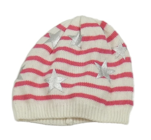 Smetanovo-tmavorůžová pruhovaná čepice s hvězdami