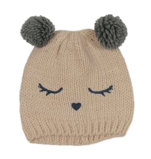 Světlerůžová pletená čepice s čumákem a bambulemi