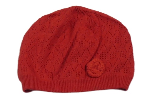 Červená perforovaná pletená čepice s květem Next