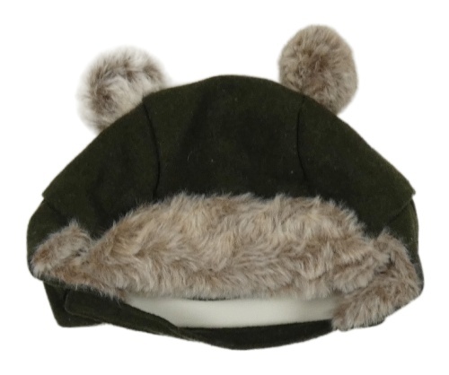 Olivovo-béžová flaušová zateplená čepice s oušky