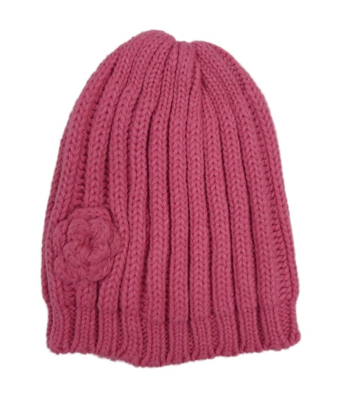 Růžová žebrovaná čepice s kytičkou