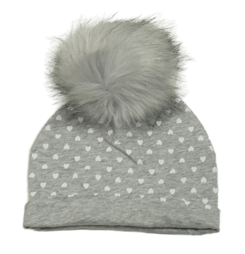 Šedá melírovaná bavlněná čepice se srdíčky a bambulí