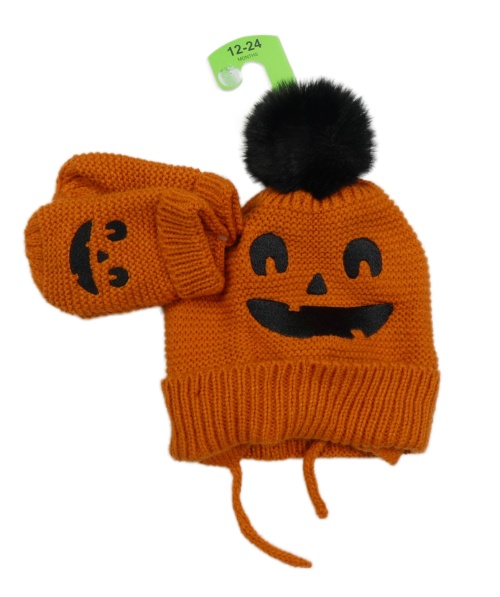 Nové - 2set - Oranžová pletená čepice + rukavice - dýně Primark