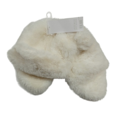 Nové - Bílá chlupatá čepice s oušky Jeff&co