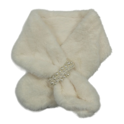 Smetanová kožešinová šála s perlami