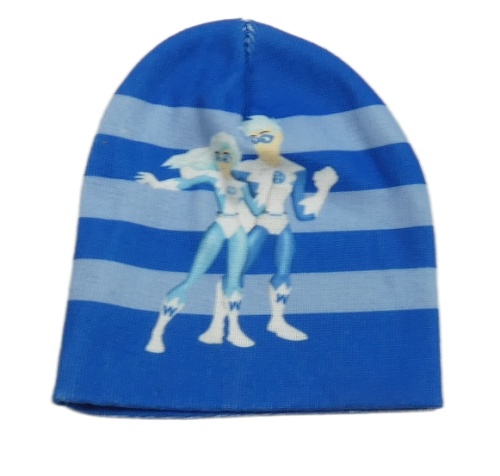 Modro-světlemodrá pruhovaná pletená čepice s obrázkem