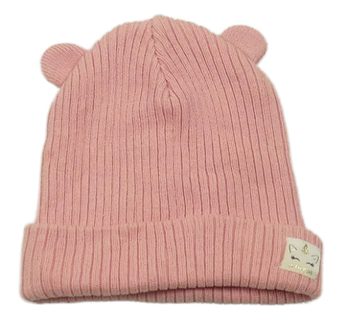 Růžová žebrovaná čepice s nášivkou a oušky Zara