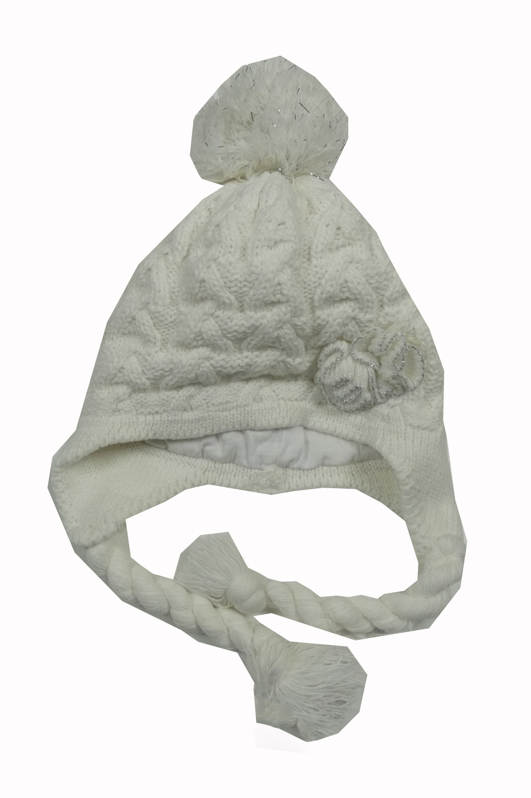 Smetanová pletená podšitá čepice s bambulí