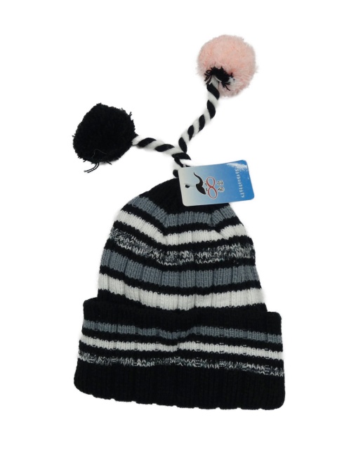 Nové - Černo-bílá pruhovaná pletená čepice s bambulemi