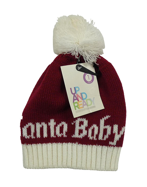 Nové - Tmavočerveno-smetanová pletená čepice s nápisem a bambulí