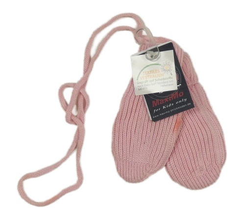Nové - Růžové pletené palcové rukavice na šňůře