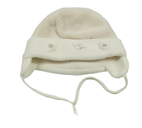 Světlepudrovo-smetanová plyšová zavazovací čepice s květy