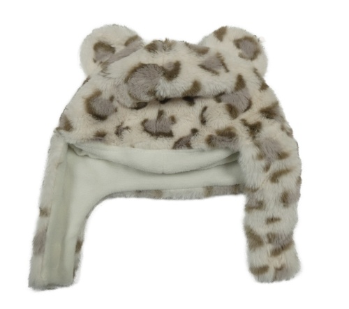 Nové - smetanovo-šedohnědo-hnědá vzorovaná kožešinová beranice s oušky Nutmeg