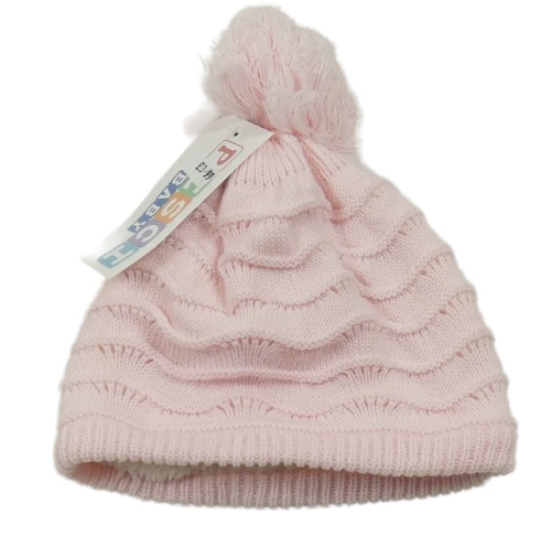 Nové - světlerůžová žebrovaná perforovaná pletená zateplená čepice s bambulí