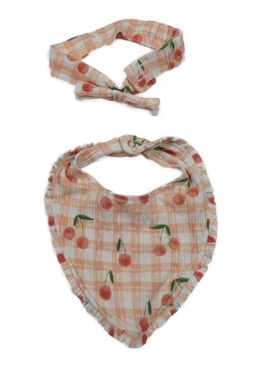 2 set - růžovo-bílý slinták s třešněmi + čelenka