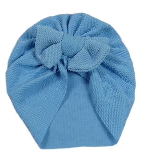 Modrá vzorovaná turbanová čepice s mašlí