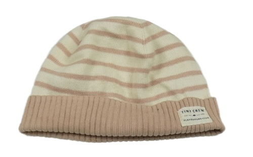 Smetanovo-starorůžová pruhovaná úpletová čepice s nášivkou