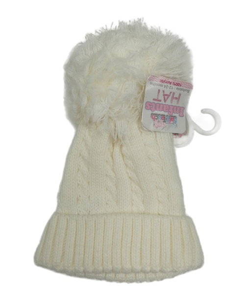 Nové - bílá vzorovaná pletená čepice s bambulí Soft Touch