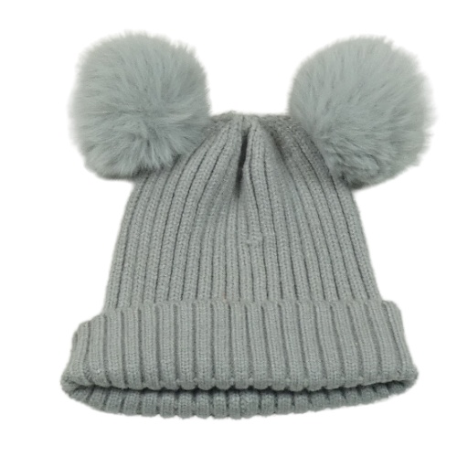 Šedá žebrovaná pletená čepice s bambulemi Matalan