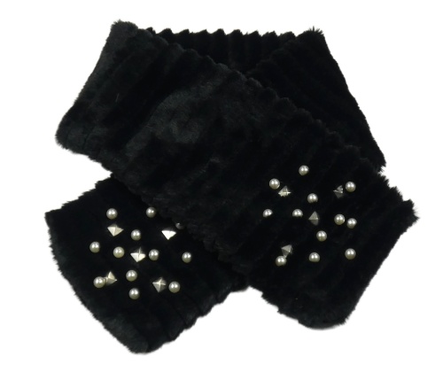 Černá kožešinová šála s perlami a hroty