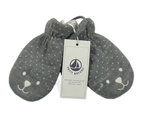 Nové - šedé melírované vlněné rukavice s čumáčkem a šňůrkou PETIT BATEAU