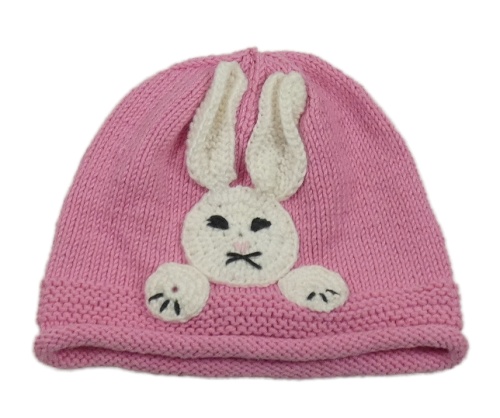 Růžová pletená čepice s králíčkem
