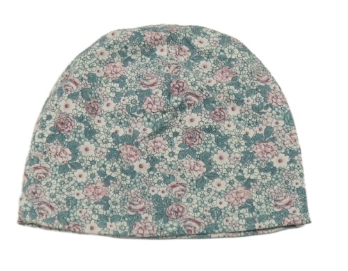 Smetanovo-zeleno-růžová květovaná bavlněná čepice Topomini