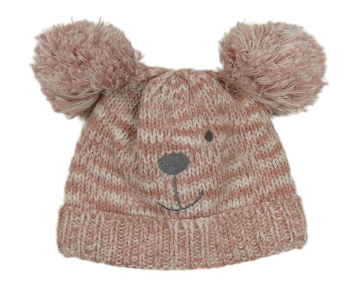 Starorůžovo-bílá melírovaná pletená čepice s čumáčkem a bambulemi F&F