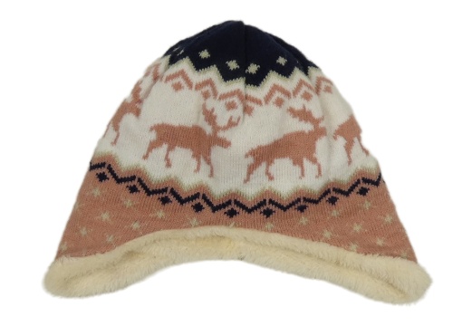 Starorůžovo-bílo-tmavomodrá pletená zateplená ušanka